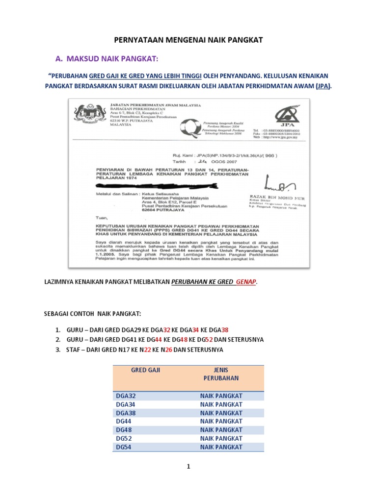 Surat kenaikan Pangkat DG48 dan kenyataan TNP gred semasa dalam BPK Surat kenaikan Pangkat DG52 dan kenyataan TNP gred semasa dalam BPK Pengesahan Dalam Perkhidmatan NI NII N 17 W17 RI Ril. 100 2 100 found this document useful 2 votes 2K views 5 pages. Kenaikan pangkat dg48 naik ke dg52 6.